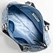 Outside zip-top closure pocket.Zip; lining.Poppy denim material to the skin based wordblock trim.15 1 / 4 (W) x 12 1 / 4 (H) x 4 1 / 2 (W) All interior zip mobile phone. and multifunction pockets. Embroidered with silver and metal on one side of the downtown New York .