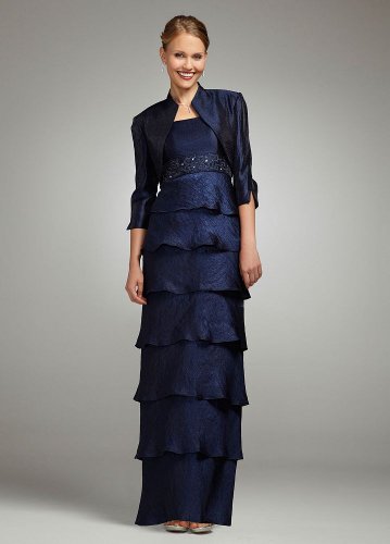 Hammered Shimmer Tiered Jacket Dress Style 070480, Navy Shimmer, 14 by David's Bridal